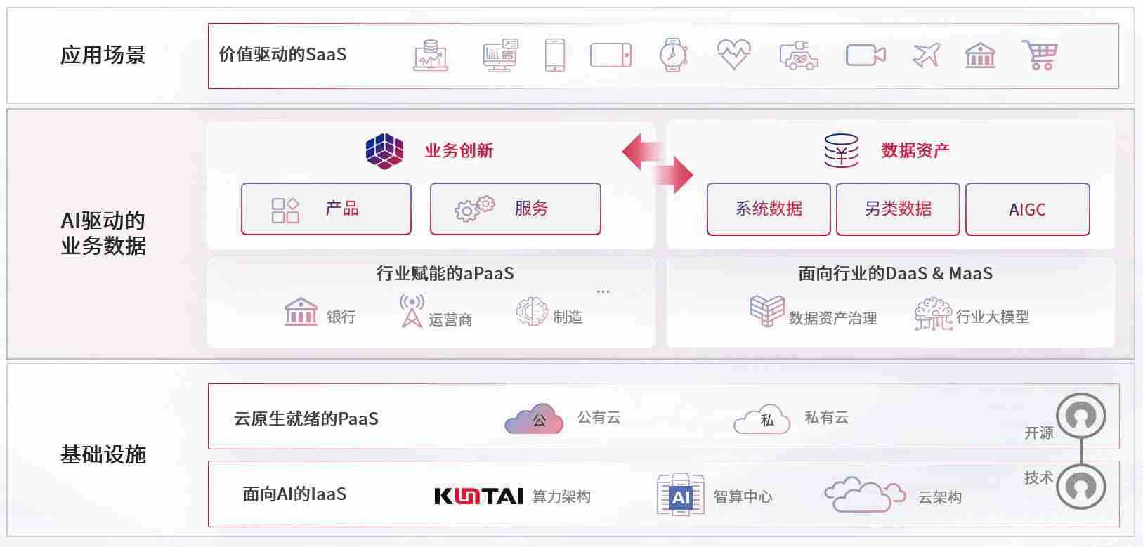 数字时代,,,,围绕企业数字化转型的关键要素,,,Z6尊龙时凯数码开创性的提出数云融合战略和技术体系框架,,,,着力在云原生、、、、数字原生、、、、AI原生和信创产业上架构产品和服务能力,,为处在不同数字化转型阶段的快消零售、、、、汽车、、、金融、、医疗、、政企、、、教育、、运营商等行业客户提供泛在的敏捷IT能力和融合的数据驱动能力,,,,构建跨界融合创新的数字业务场景和新业务模式,,助力企业级客户建立面向未来的核心能力和竞争优势,,,,全面推动社会的数字化、、、、智能化转型升级。。。。