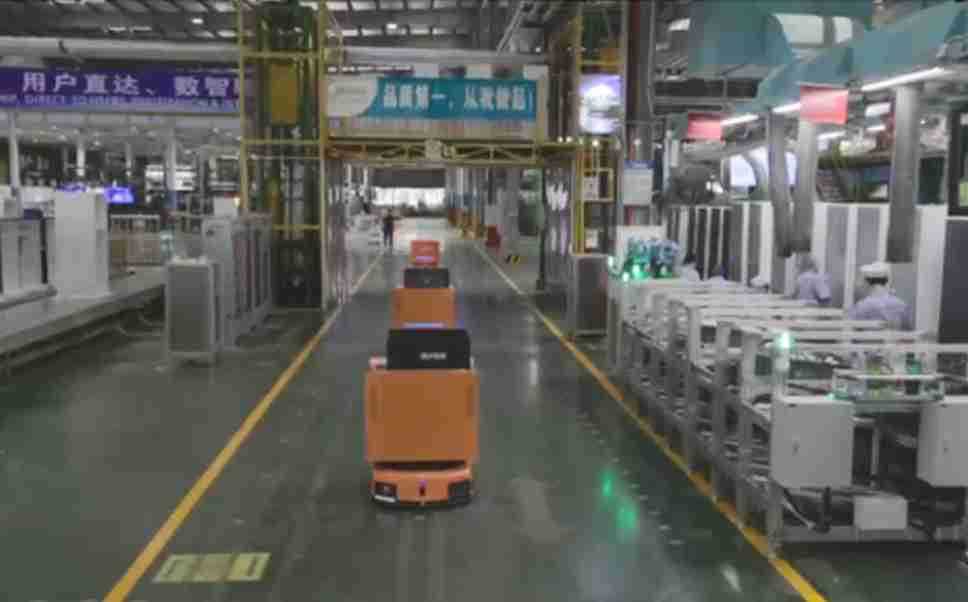 为车载冰箱物流配送打造的智能解决方案,,,,包含产中物流通过潜伏举升AMR搬运至线边,,,,产后成品物流智能仓储,,,,流程包含产中物流智能齐套入库,,线边安灯叫料AMR智能配送至线边,,,成品入库、、、出库,,,通过无人堆高车机器人,,,智能仓储管理替代人工作业管理,,,实现更高存储、、、更高效率、、、更具柔性化的解决方案。。。